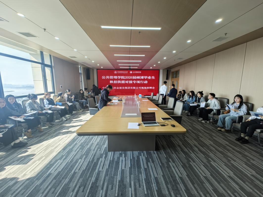座谈会结束后,现场随即转入“公共管理学院2026届硕博毕业生秋招供需对接专项行动——中国十五冶金建设集团有限公司现场招聘会”环节。十五冶对外公司人力资源部招聘主管童欣女士就本次招聘岗位、任职要求及公司人才发展体系向在场同学作了详尽宣讲,并耐心解答了毕业生们关心的各类问题。宣讲结束后,与会同学踊跃投递简历,并与企业招聘代表进行了面对面沟通。