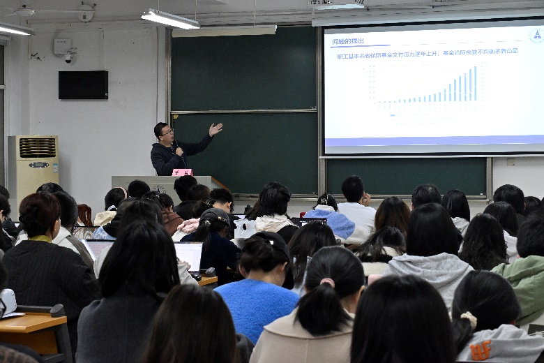 (通讯员 王璐婷)10月22日晚,由中南财经政法大学研究生院、党委研究生工作部、中南财经政法大学研究生会主办,中南财经政法大学公共管理学院研究生会承办的第363期“文澜大讲堂”之名家讲坛——《养老保险全国统筹制度的研究进展与总结》学术讲座在文添楼311举行。本次讲座特邀中南财经政法大学公共管理学院曾益老师担任主讲嘉宾,公共管理学院辅导员魏晨雪老师主持,公共管理学院2025级硕士研究生参加学习。