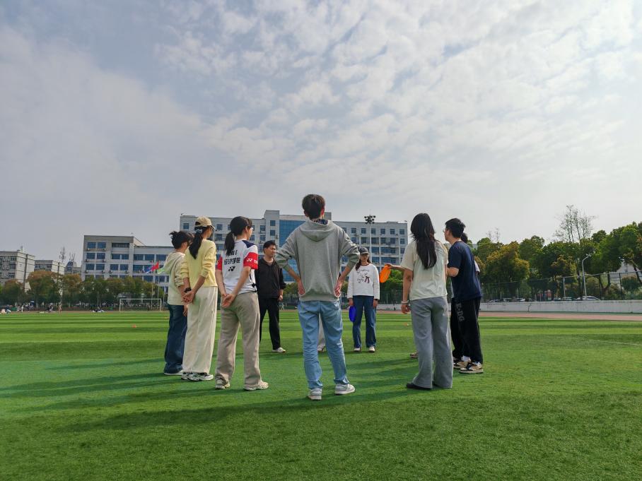 本次飞盘友谊赛秉持零基础友好原则,充分兼顾不同同学的运动基础。从握盘姿势、传接技巧等入手,手把手教学。在二十分钟的分组练习后,同学们迅速熟悉技巧、找到手感,从生疏试探到熟练配合,为后续的趣味对抗赛筑牢了基础。