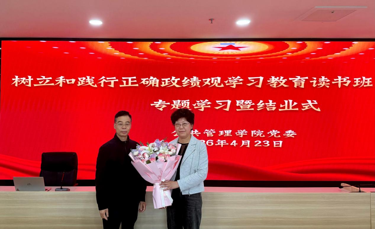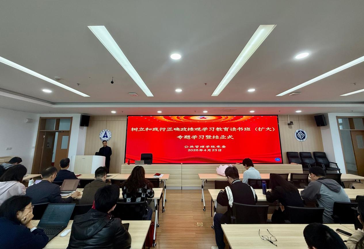 新闻网讯(通讯员 李海楠)4月23日下午,公共管理学院党委召开树立和践行正确政绩观学习教育读书班(扩大)专题学习暨结业式。结业式由学院党委书记王建荣主持,学院领导班子成员、全体教职工及学生党支部书记参加学习。