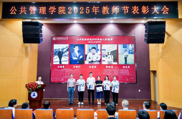 学院副院长田进宣读《公共管理学院关于表彰2025年师德师风先进个人的决定》,授予刘俊霞、李明强、田艳平、喻良涛“红烛奖”,授予刘茂盛“灯塔奖”。他们躬耕杏坛四十多年,关心关爱学生,用爱心和耐心帮助学生成长成才;有的立足本职岗位,默默奉献,在平凡的岗位上做出了不平凡的贡献。