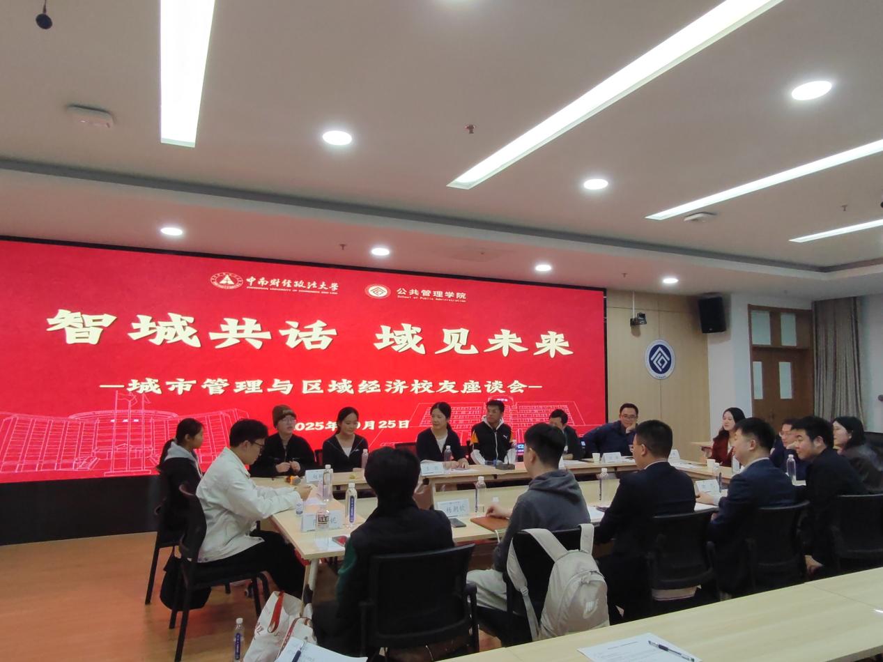 新闻网讯(通讯员:肖天娇)2025年10月25日,公共管理学院城市经济管理系于文瀚楼东814会议室隆重召开了首次校友座谈会。座谈会由王玥老师主持,城市管理专业教师程广帅、何雄、贺三维、赵颖智、张俊峰及返校的优秀校友代表、城市管理专业本科生、区域经济研究生共同参与。