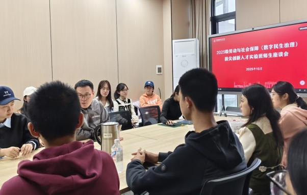 (通讯员:马李梦)2025年11月1日下午,劳保2501(数字民生治理)实验班师生座谈会及“你好呀,新同学”秋日破冰心理班会于文瀚楼东803A会议室顺利举行。班级导师薛新东教授与全体同学齐聚一堂,围绕学业发展与心灵成长展开深入交流。同学们在导师的悉心指导下收获良多,并在温馨活泼的破冰活动中增强了班级凝聚力,实现了知识与情感的双向提升。