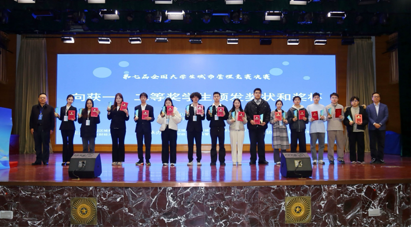 其中,3支获一等奖的队伍聚焦智慧城管赋能基层治理、智慧养老中的多元主体协同等议题,提出的解决方案兼具创新性与可操作性,得到评委专家的高度认可;4支获二等奖的队伍围绕城市交通拥堵治理、老旧小区服务优化等热点问题,结合专业知识给出系统且务实的应对策略,充分展现了扎实的专业素养与创新思维。