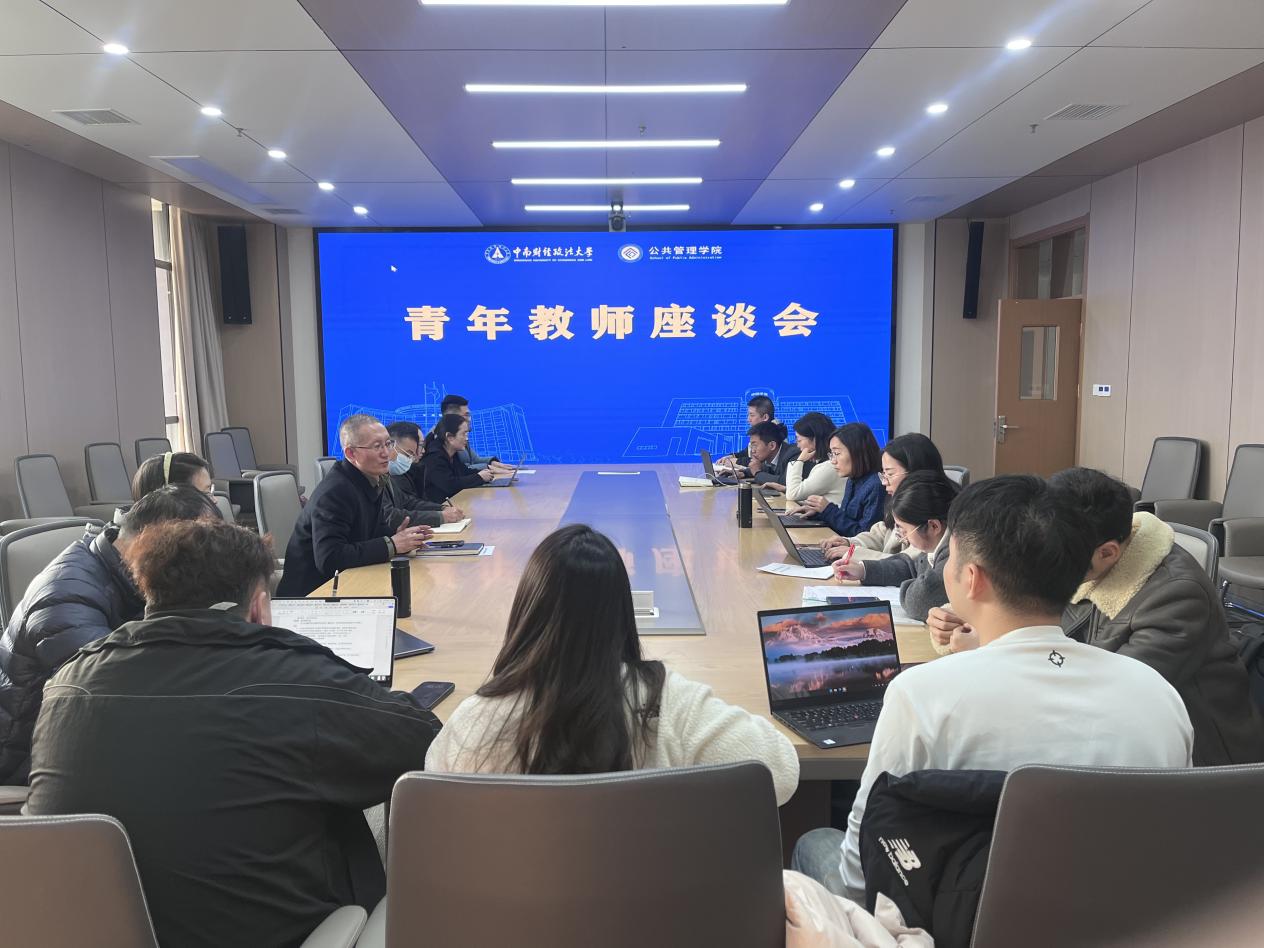 新闻网讯(通讯员 韩雨晴 向双申)为深入推进青年教师队伍建设,倾听青年教师心声,助力青年教师成长成才,12月9日上午,公共管理学院在文瀚楼东801会议室召开青年教师座谈会。院长张广科、党委书记王建荣、学院各系青年教师代表共聚会议、共话成长、共商发展。
