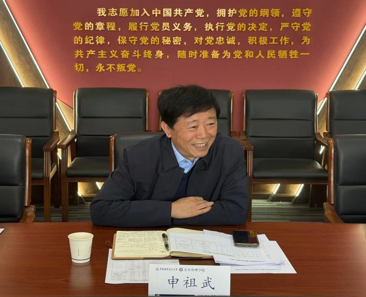 新闻网讯(通讯员 向双申)为充分发挥党外知识分子在学院建设发展中的重要作用,广泛凝聚发展共识、汇聚智慧力量,12月12日,公共管理学院党委召开党外知识分子座谈会,校党委副书记、纪委书记申祖武出席会议并讲话,院党委书记王建荣、党委副书记刘茂盛、党政办公室主任向双申和党外知识分子代表参会。