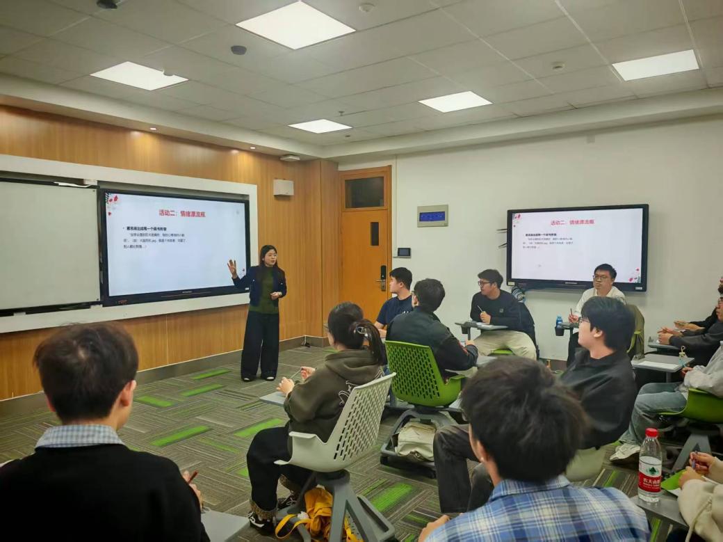 活动伊始,周老师以轻松的热身分享环节拉开序幕。通过破冰小游戏,同学们快速打破陌生感,敞开心扉交流学业中的困惑与压力,现场氛围迅速升温。周老师引导大家认识到:学业焦虑是大学生成长中的普遍情绪,无需过度自责,学会接纳情绪才是缓解压力的第一步。