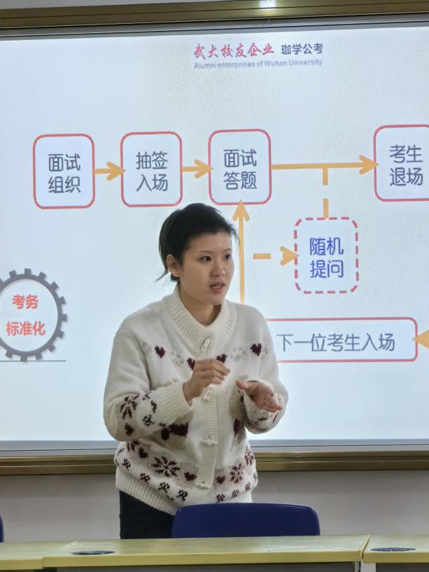 活动伊始,舒老师以“考官点睛”开启本次活动,从考官视角深度剖析结构化面试的评分逻辑与角色定位技巧,梳理公考高频考察方向与高分应对策略,并结合学科特色,为同学们讲解如何将专业能力转化为面试竞争优势。