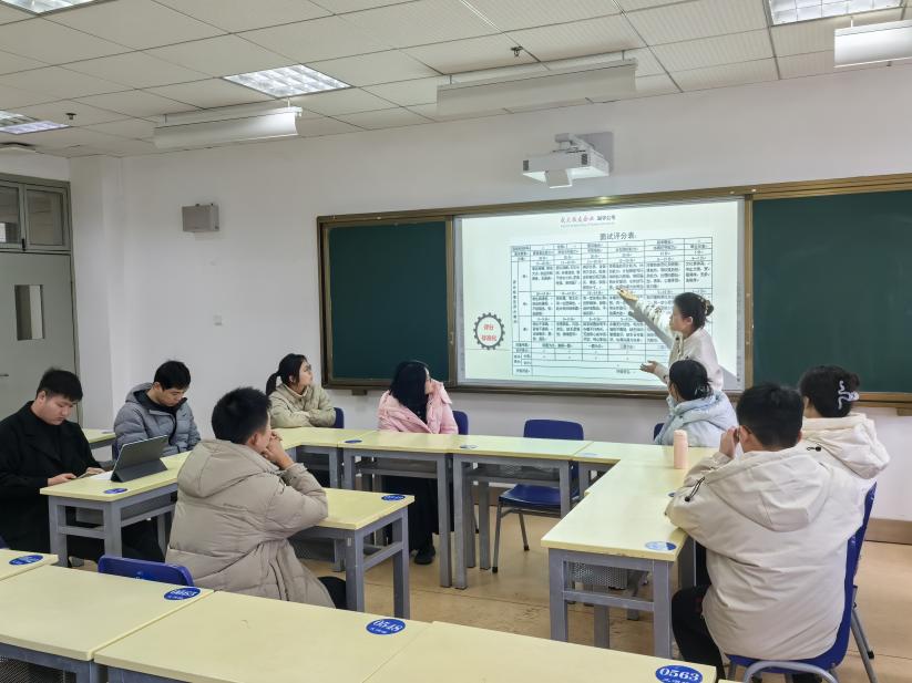 紧接着,舒老师针对同学们的模拟表现进行专业复盘,从回答结构、表达逻辑、案例运用等多个维度展开细致点评,精准指出同学们在答题思路、礼仪细节等方面的问题与不足,并结合具体作答情况给出个性化提升建议。