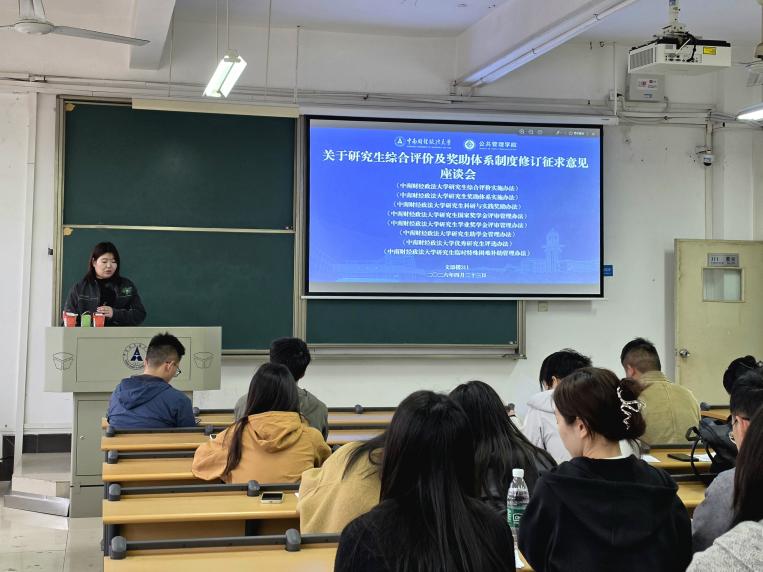 (通讯员 颜菲儿)为深化研究生教育评价改革,优化研究生综合评价与奖助体系,充分倾听学生意见,4月23日下午3点45分,公共管理学院于文添楼311教室召开研究生综合评价及奖助体系制度修订征求意见座谈会。学院非毕业年级班长、学习委员等学生代表参会,学院研究生工作办公室主任魏晨雪、辅导员田雨现场解读政策,倾听诉求。