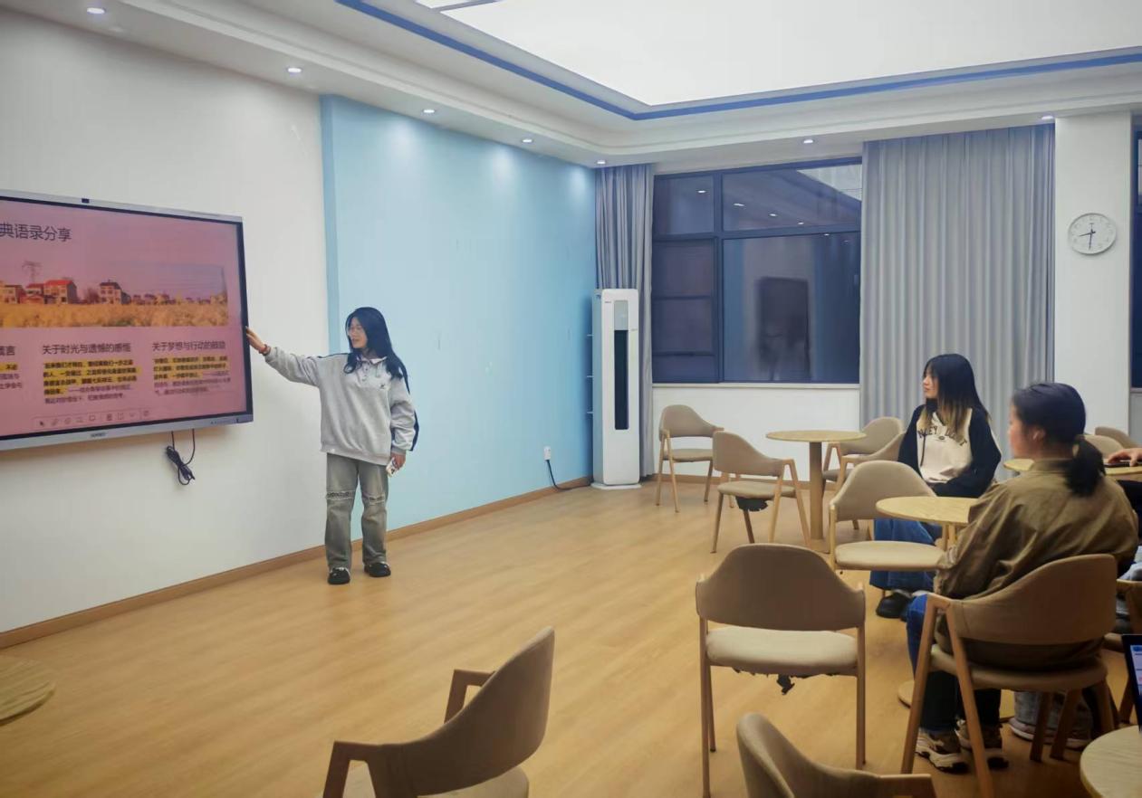 杨紫涛同学分享了《你也走了很远的路吧》。她结合书中贴近青春与生活的故事,分享成长路上的坚持、告别与自愈,鼓励同学们在平凡的日常中保持热爱,在奔波与忙碌中接纳自己、温暖自己,以从容坚定的姿态面对生活中的挑战。