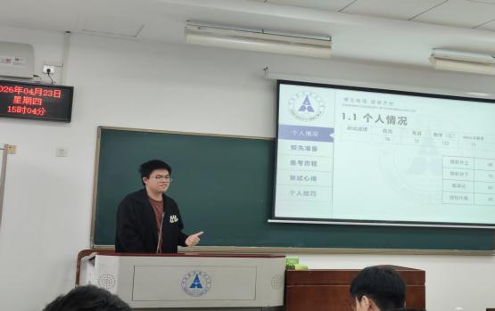 新闻网讯(通讯员:朱雨梦,赵雪)为提前谋划2027届毕业生就业工作,帮助我院学子明晰考研形势,掌握科学备考方法,4月23日,公共管理学院学习发展中心特邀2022级本科毕业生王立业、涂欢欢、吴旭涵为学生分享研究生入学考试备考经验。