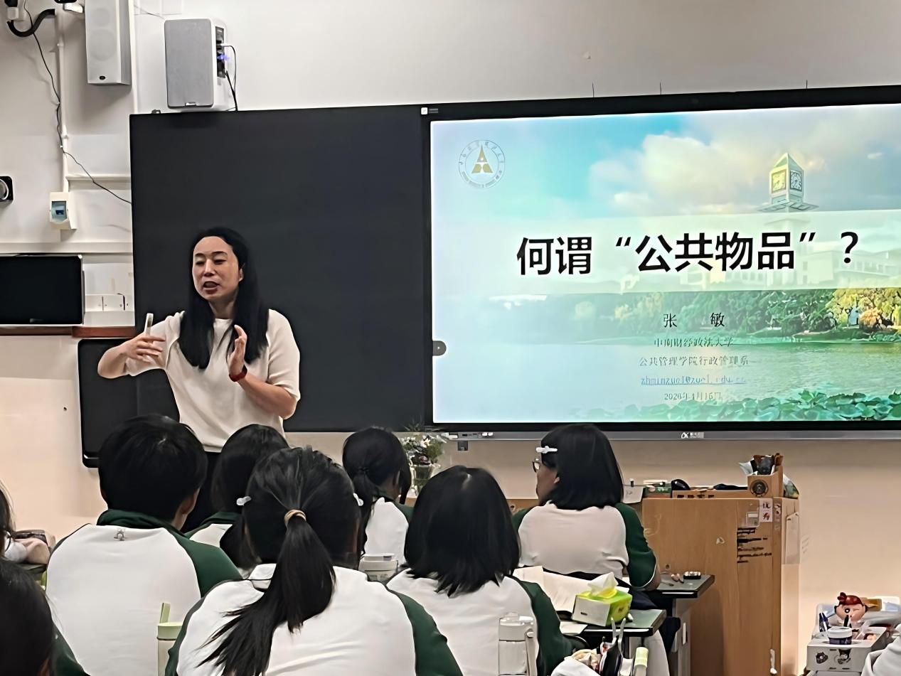 活动的另一大亮点,是由我院专任教师张敏在双流中学为高二学生带来的一堂别开生面的主题研讨课——“何谓公共物品”。课程以游戏导入,组织学生现场组建团队、分工协作完成游戏任务,在互动中启发学生思考管理学的现实价值。随后,张敏老师系统梳理了管理学的学科谱系,重点介绍了公共管理学的学科定位、培养方向及未来就业去向。整堂课气氛活跃,互动频繁,充分展现了我校教师的教学风采与学科魅力,在低年级学生心中播撒下一颗梦想的种子。